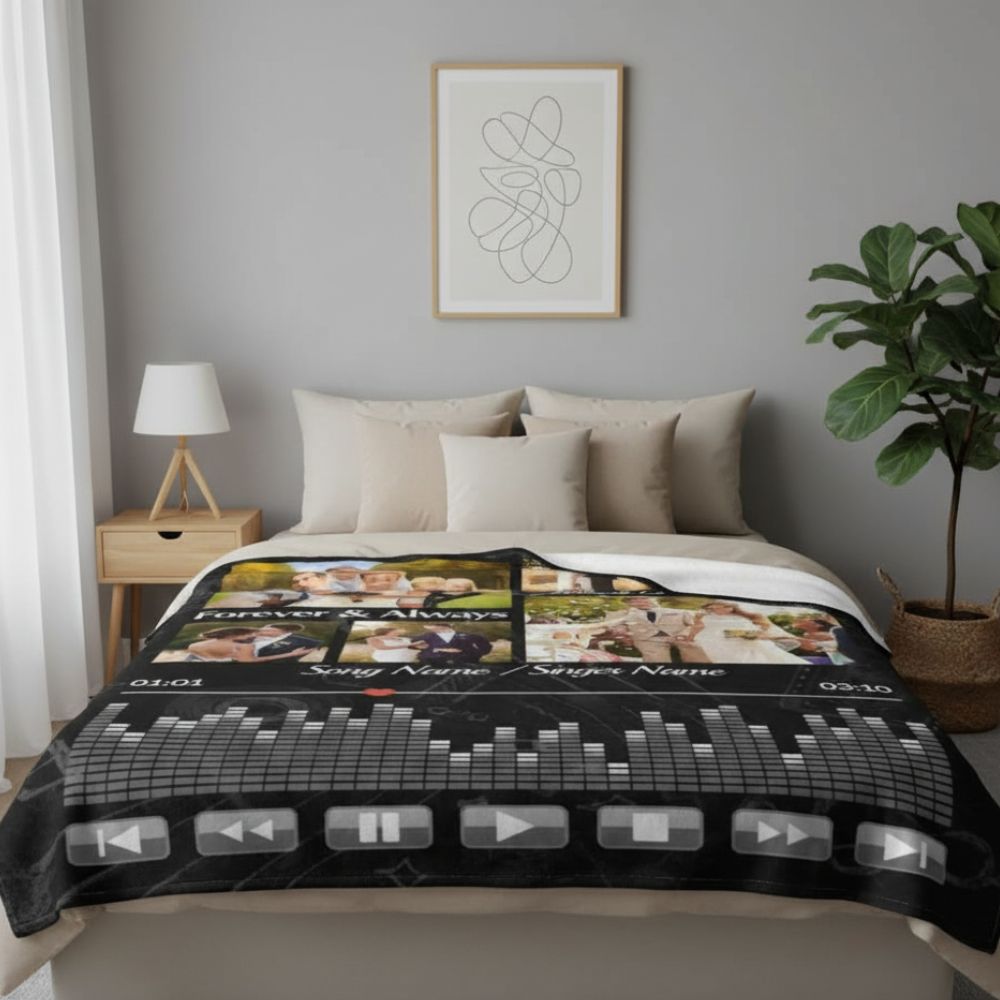 Offrir une couverture personnalisée musique est la meilleure façon de combiner douceur, émotion et passion musicale. Conçue pour apporter chaleur et réconfort, elle transforme vos instants de détente en une véritable symphonie de bien-être. Personnalisable avec vos photos ou motifs préférés, cette couverture devient un cadeau unique, idéal pour les amoureux de musique et les esprits créatifs.